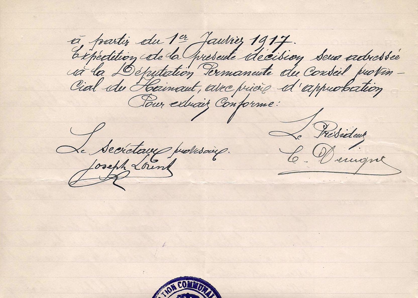 ARCh020 - recto SALAIRE SECRETAIRE COMMUNAL en 1917