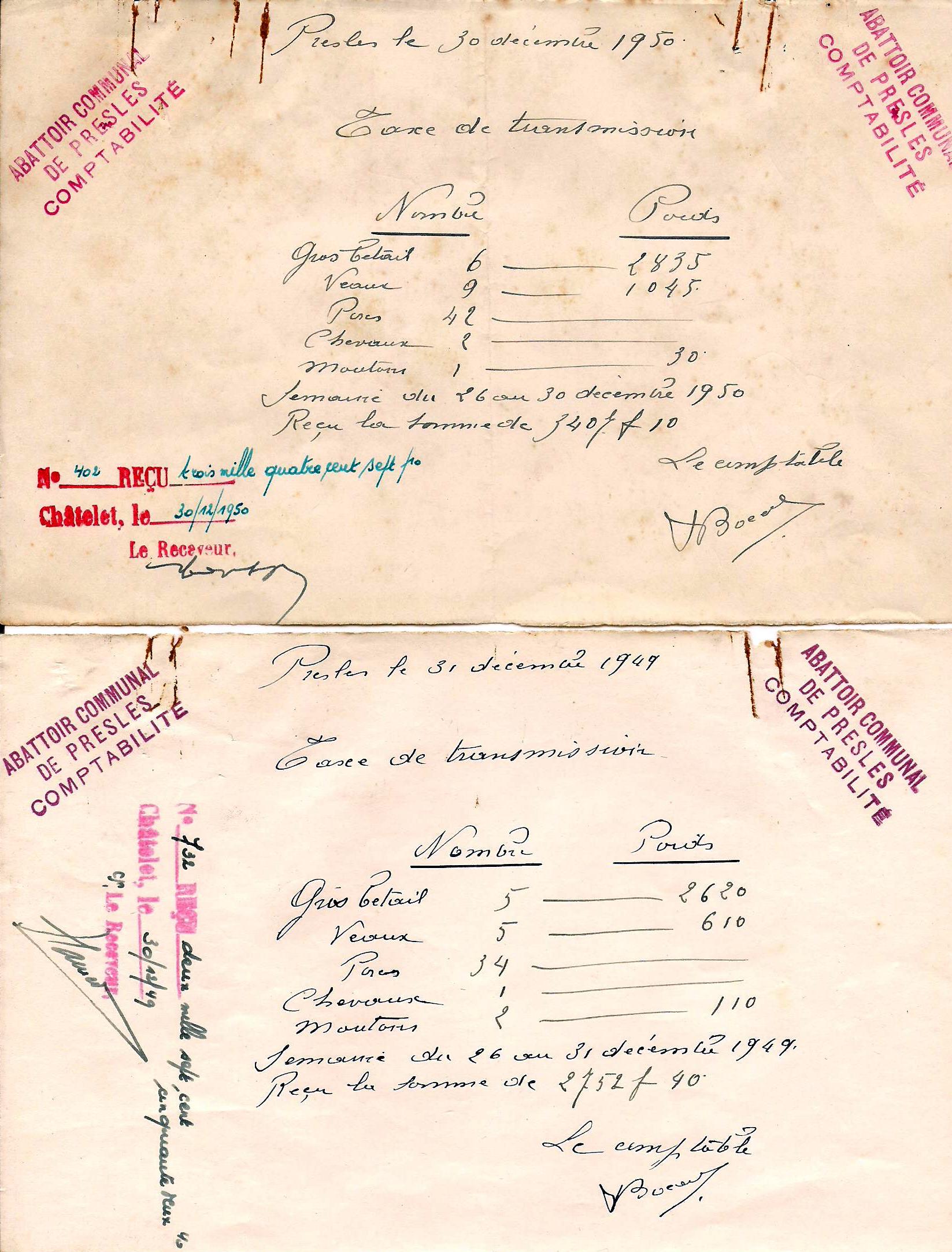 ARCh017Abattoir communal de Presles L’abattoir fonctionna de 1948 à 1956. Il était situé dans les sous-sols du « Sapin Vert. Voir ARCh013 Archives communales - ASBL Patrimoine preslois