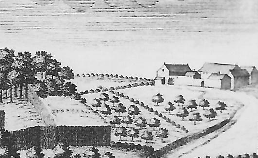 Clichés : CHA004b Vues et agrandissements du château de Presles et des bâtiments de la « Grande Cense du Château » Extrait des « Délices du Pays de Liège » de SAUMERY