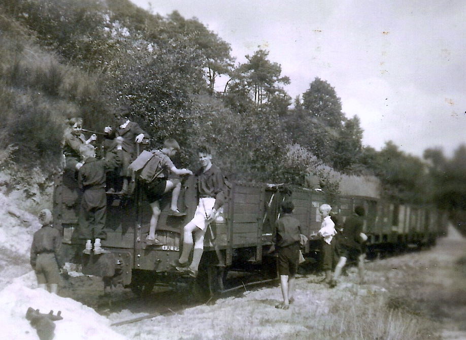 Wagons de marchandises du tram à vapeur Fosses-Châtelet (Probablement à proximité du tournant de la Falîge) Coll. Eug. Gravy