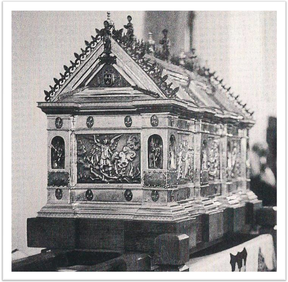 DIV009 Châsse de sainte Rolende à Gerpinnes (1599). Elle fut réalisée par le maître orfèvre namurois Henri LIBERT Coll. Patrimoine Preslois