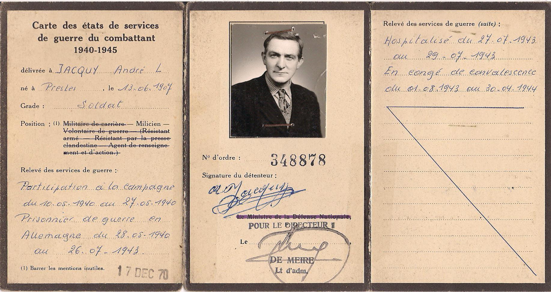 Vous êtes ici : Accueil ERNEST GRAVY et le « Patrimoine Preslois » asbl Albums Divers Etats des Services de Guerre d’un combattant 1940-1945