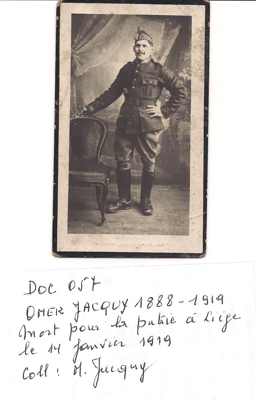 Omer JACQUY (1888-1919) Mort pour la Patrie à Liège le 14 janvier 1919 Coll. M. JACQUY