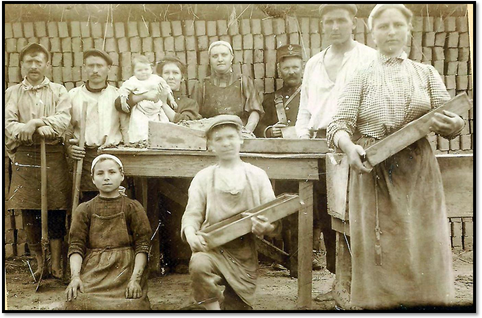La briqueterie (probablement la briqueterie GuillaumeTilmant-Jacquy) Remarquez le facteur. Coll. Eug. Gravy