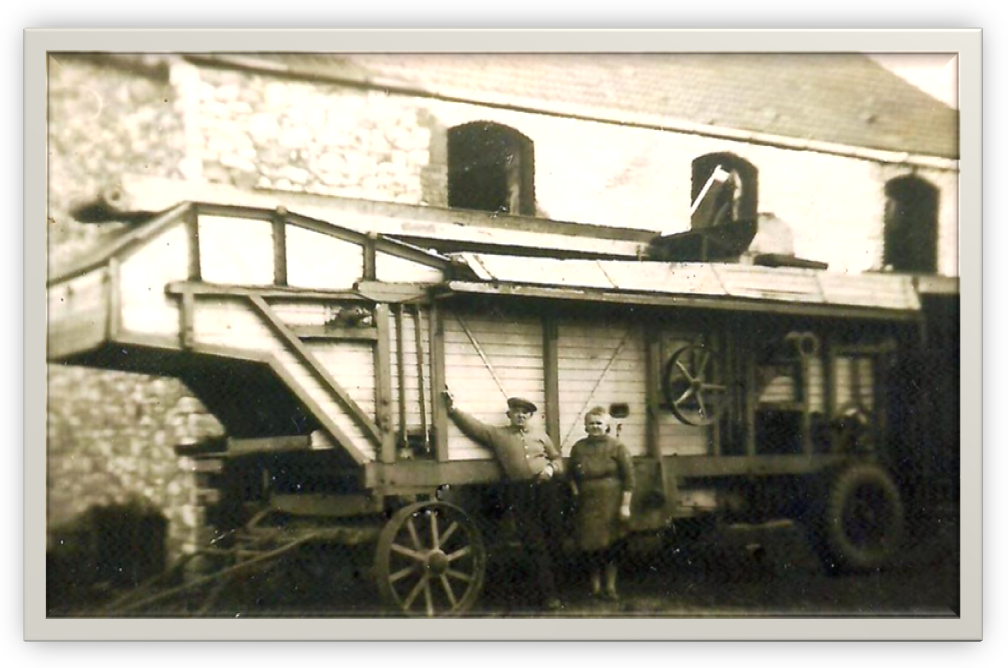 Cliché :DOC067La dernière « machine à battre » de Presles était la propriété de M. et Mme Léon TAXHET-TATON. Elle était située 35, rue de Fosses. L’activité cessa dans les années 50’. .