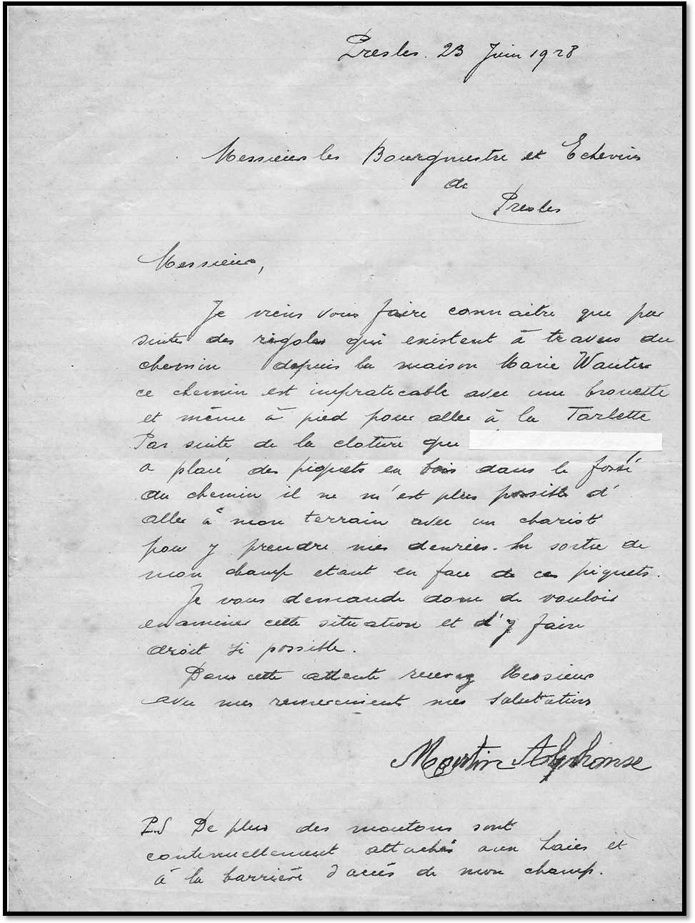 Alphonse MARTIN. Les conflits de voisinage existent depuis toujours. Ce n’est pas sans raison que Alphonse MARTIN avait trois sobriquets (voir « Les Caillaux da Maillard » in « Anecdotes ») Coll. Patrimoine Preslois
