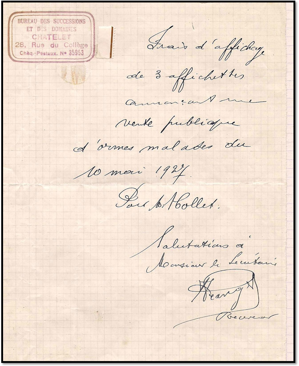 Cliché : DOC111Abattage des ormes de la route de Fosses (N22) Ce document nous précise l’époque et les raisons de l’abattage des ormes en bordure de route. Coll. Archives de l’Administration communale de Presles