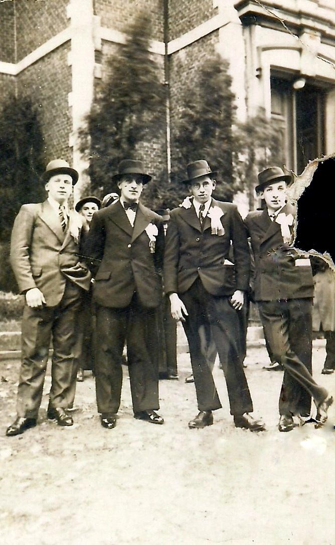 Les Chefs de la Jeunesse lors de la fête de Presles en 1938. De gauche à droite : Albert BOHON, Charles BARBEY, Valentin BIRON et Albert ADAM. Ce fut la dernière fête communale avant la guerre car la fête n’eut pas lieu en 1939 à cause de la mobilisation. Coll. F. Glise