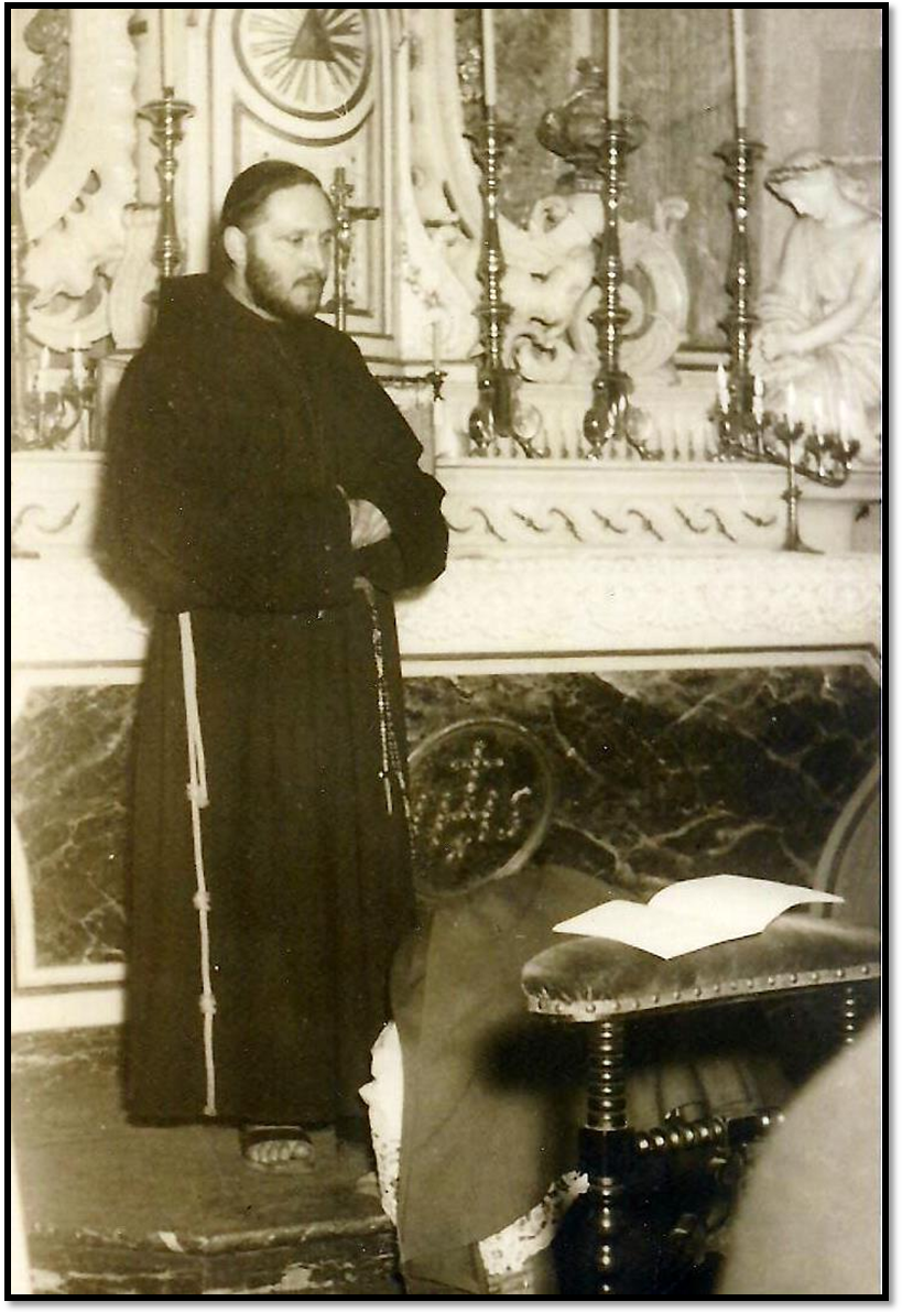Cérémonie organisée en février 1955 lors du départ du Frère franciscain Gilbert LEBON pour la mission du lac Moëro, Congo belge. Coll. R. Henin