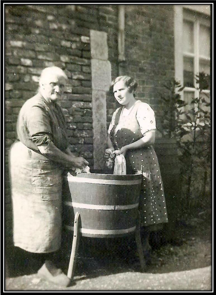 Une lessive bien avant la guerre. Madame Eugénie FRÉDÉRIC et sa fille Firmine Coll. Ida Mainjot