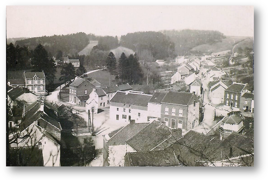 Clché IMA034Clché IMA034 Remarquable panorama du cœur du village, réalisé par Emile MAINJOT, passionné de photographie, vers 1935. Coll. Ida Mainjot