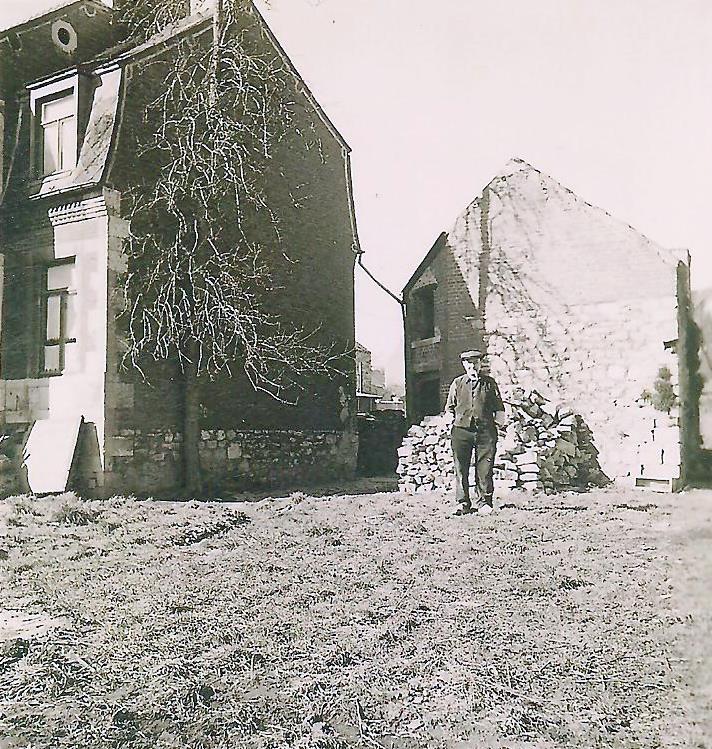 Cliché : IMA037Cliché : IMA037 Sur la Place de Presles. Une partie des maisons MARTIN. À gauche, le pignon du n°13 Coll. F. Degrez
